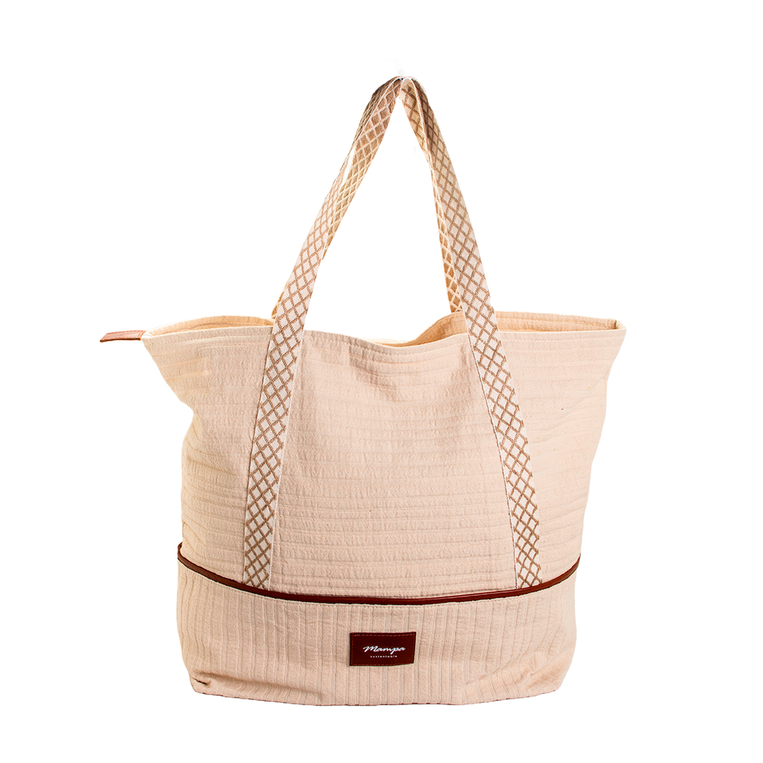 - Bolso amplio, resistente y estético. Ideal para playa, viajes cortos o uso urbano. Confeccionado con materiales nobles y manija reforzada para mayor durabilidad.